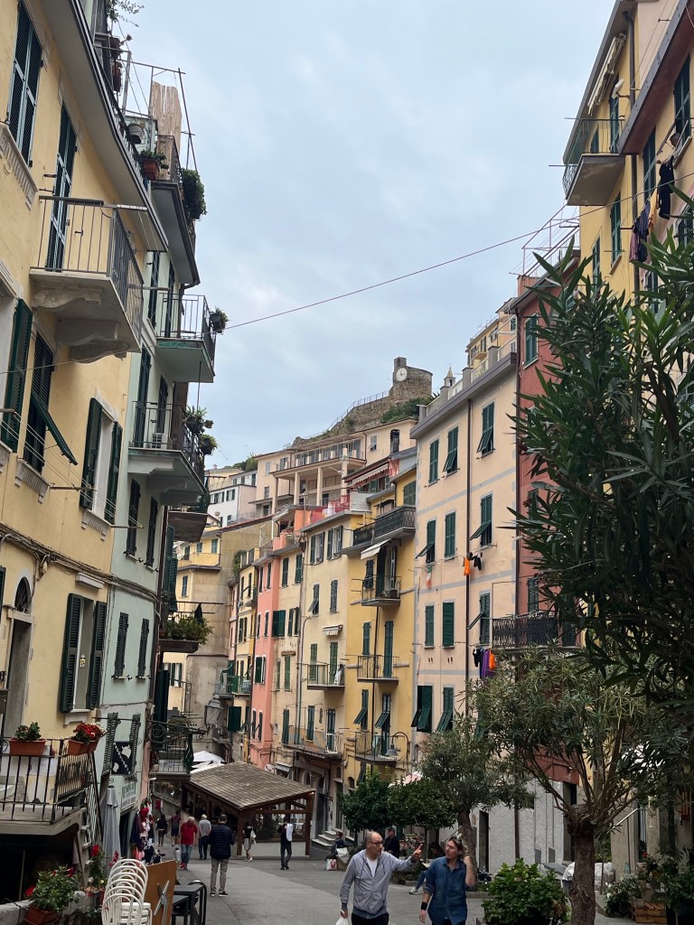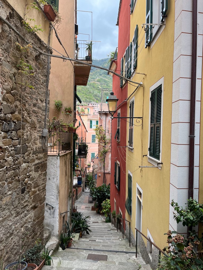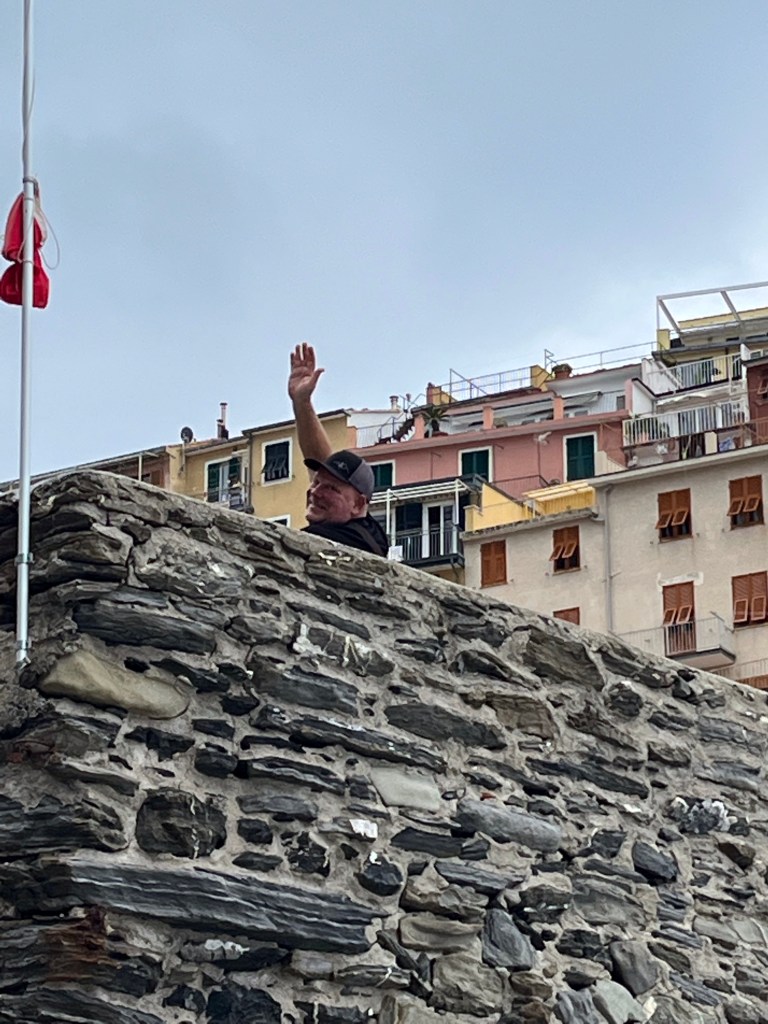 Riomaggiore , wow!Ferries run between the villages. It was too rough for us!Beautiful.Ciao! Ciao! Ciao!Walking trail runs along the water, a lot are close It’s Italy!Ok, quick train ride to Manarolo.Wow!MonaroloYou can see, the hills have been terraced over the years for agriculture. Grapes being the main crop back in the day. Now it’s tourist money😎Now on to Vernazza, we skipped Corniglia today.Last, but not least, Monterosso. We stayed here in 2013. It’s a wonderful village, our favorite of the five. Harbor of MonterossoMonterosso Stairs to where we stayed in 2013Monterosso, fun, fun day. Unlike Piedmont, where we heard no English. Cinque Terre is on the bucket list for folks young and old. It’s packed with tour groups from throughout the world.