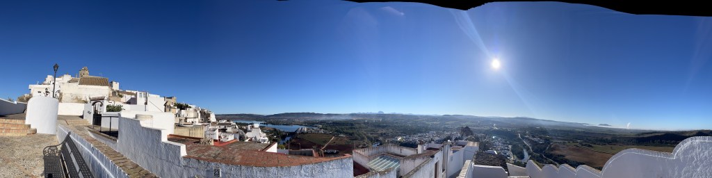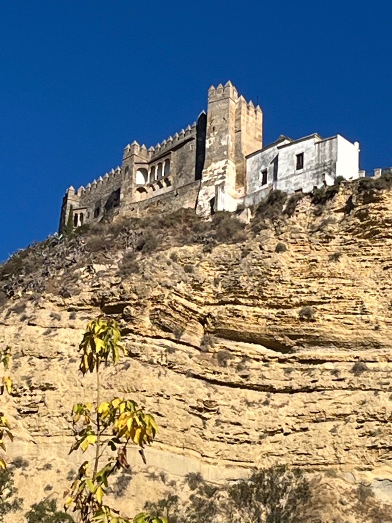 Tour guide Cindy and I spent Tuesday walking and exploring more of Cadiz! (25,000 steps) After a wonderful shrimp dinner she says “ Road trip tomorrow, with hills and steps and cobblestones! Och, says I, my favorite three things in the world! Off we go to Arcos de la Frontera, one of Spains famous white city’s.