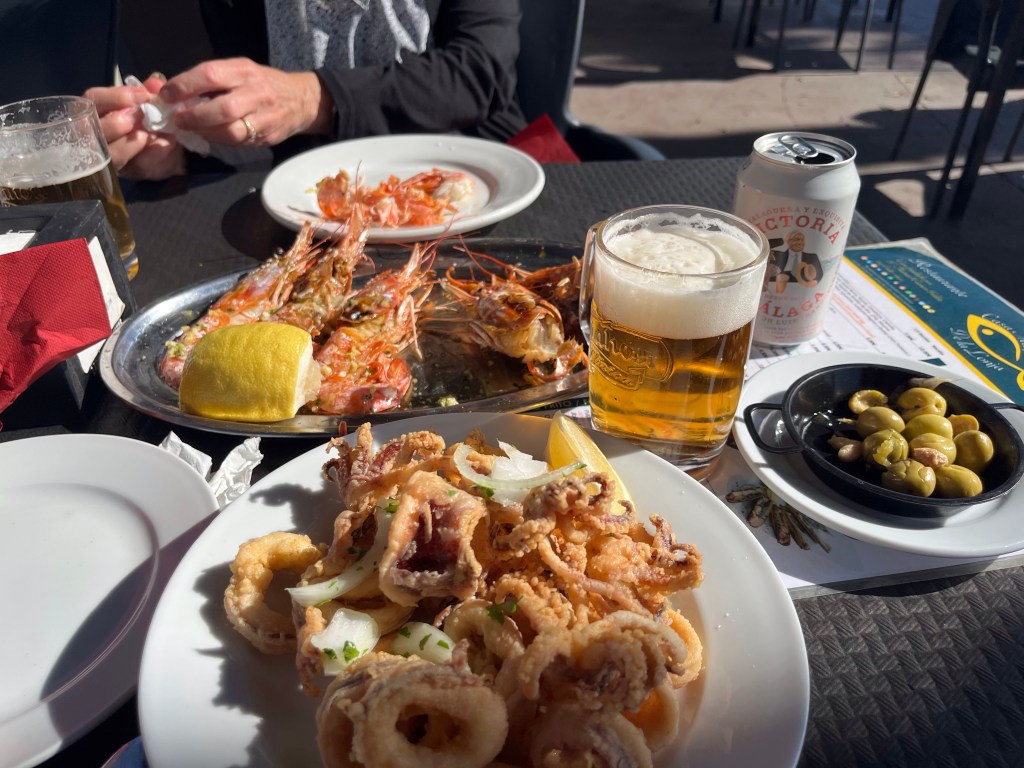 BBQ in Malaga Prawns and Calamari with the local brew, Victoria That’s a restaurant with a view and also delicious!Marbella neighborhood.