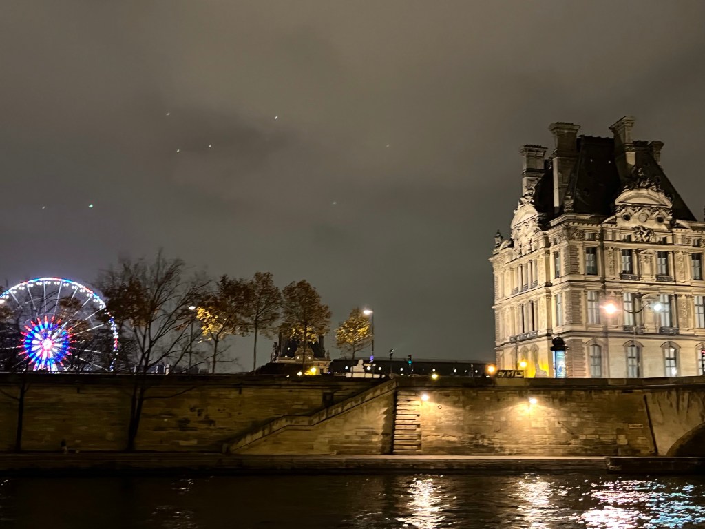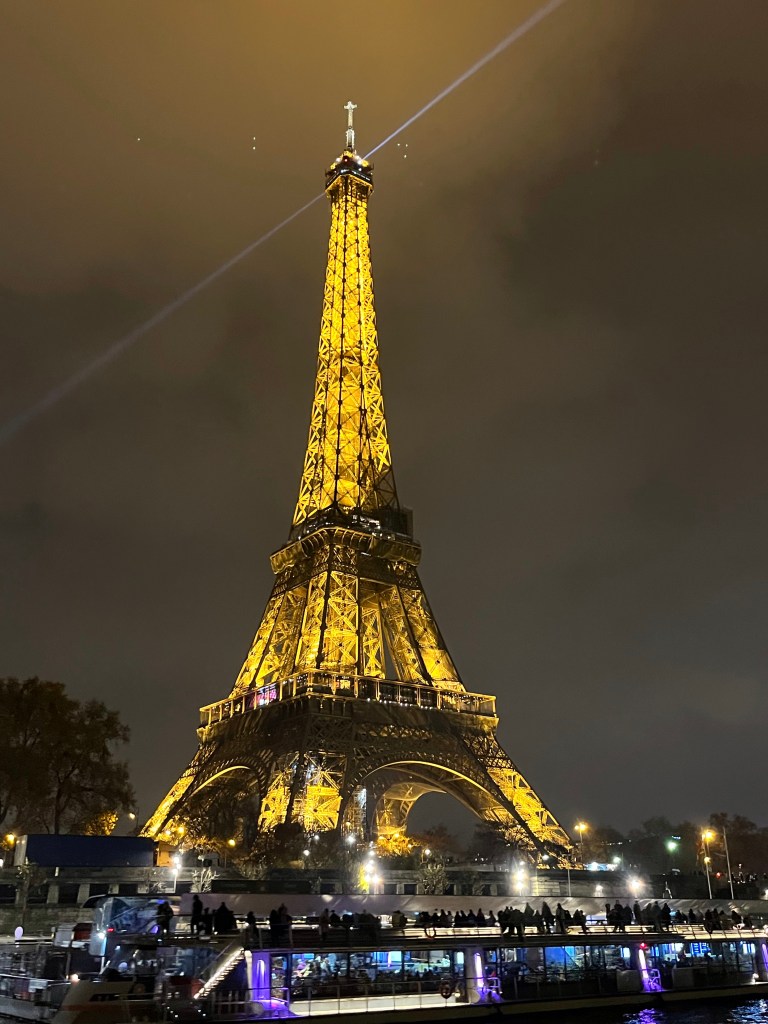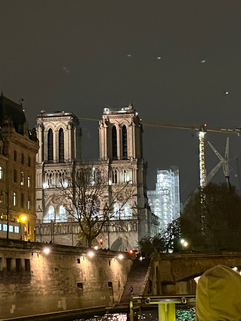 After checking into their hotel in the 10th arrondissement area of Paris, they used the Paris Metro system to get around the huge, huge city. We’ve used the Paris Metro system since 1986 and, Cindy’s glad to report the subway is much, much cleaner and safer than it’s been in the past several visits. Ok, tour guide Cindy says walking tour. I’ve been on these in Paris, they can be brutal, 35,000 plus steps🤔First stop where else, the Eiffel Tower, unfortunately it’s snowing in Paris, so they only went to the second floor, via the stairs!Looks like two happy campers.Paris from the Eiffel TowerWalking time, over to the Arc de Triomphe, very little traffic!Paris is in full Christmas decoration mode. L’eglise de la Madeleine…walking, walking, walking.The mall at the Louvre, beautiful!Ok, now the real star. A nighttime Champagne river cruise on the river Seine. Cold, but they sat on the top, outside.Cathedral Notre Dame. Notice the construction cranes, projected completion 2024, in time for the Paris Olympics.You remember the terrible fire here in 2019The Louvre and Ferris wheel!Beautiful!And last but not least, the star!