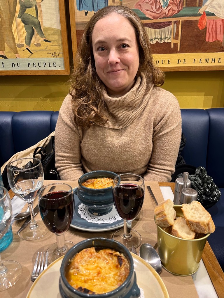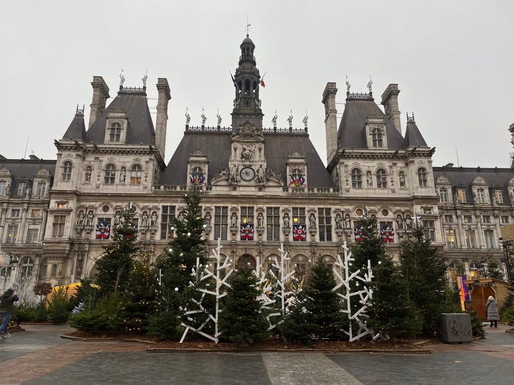 Day two, walking again, Place Des Vosges.Paris is beautiful. Did you know Paris is hosting the 2024 Olympics? They are getting ready.The Hotel de Ville, old city hall decorated for Christmas.Luxembourg Gardens and PalaceLunch time, what else, French onion soup and red wine.Pont Alexandre III bridge, one of the most beautiful bridges in the world.And their grand finale was the Basilique Du Sacre-Coeur de Montmartre.